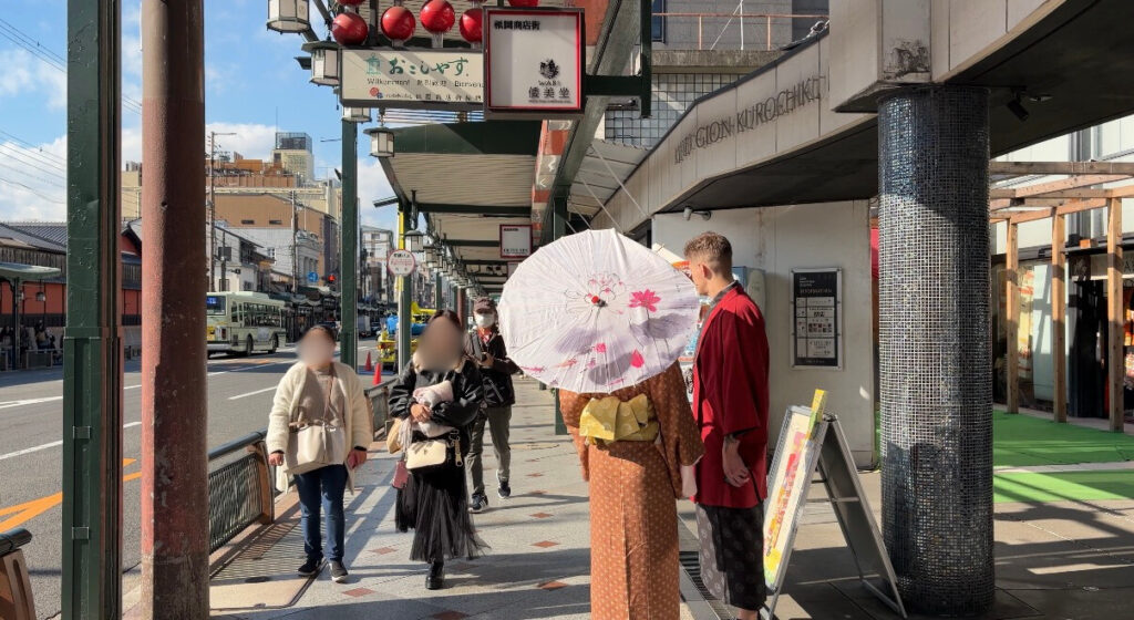 「祇園」の停留所に着いて、そこから四条通、花見小路と進み、東山通りから清水寺方面へ向かって歩きました。